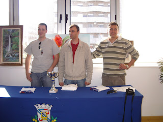 Da esquerda para a direita: Francisco Correia, vencedor da prova; Vítor Miguel, árbitro e Cláudio Boino, director da prova (que não jogou para dar oportunidade aos outros...)